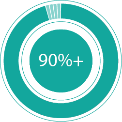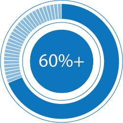 60%+ of primary raw materials are developed with a minimum of 50% recycled content.
