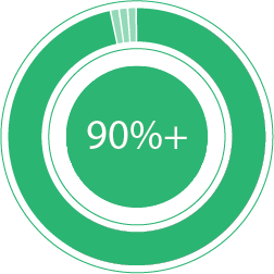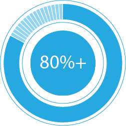 80%+ of primary raw materials are developed with a minimum of 20% recycled content.